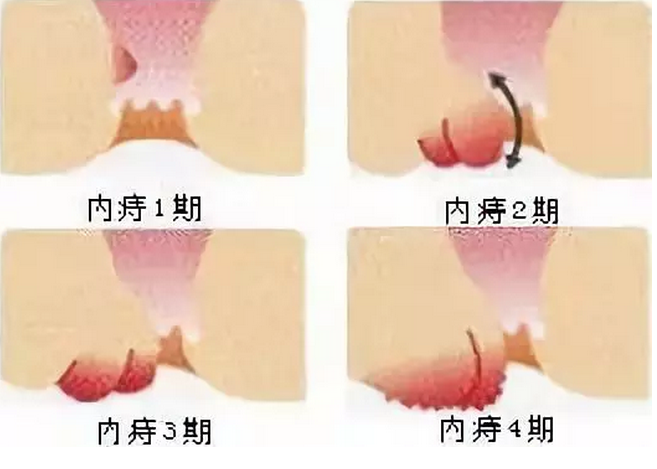 所以,大家平时一旦发觉肛门有一点不舒服或者便完了肛门会不舒服,一定要提高警惕!内痔根据症状严重程度分为4个阶段: