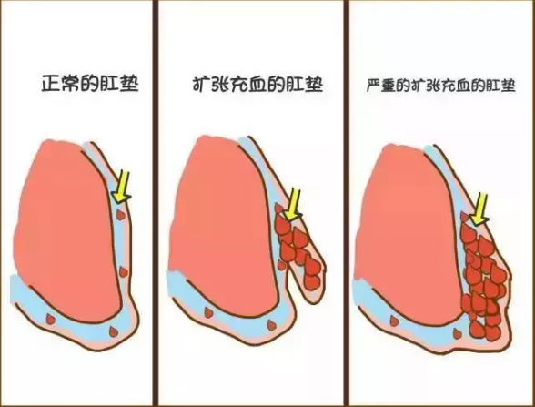直肠里的静脉回流受阻(就是血流回不去了被堵住了),肛垫里面那个静脉血管团里的血越充越多,慢慢滴就移出肛门口,粘膜松弛、下垂、脱出,然后就形成了痔核。