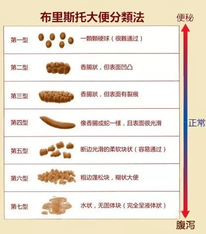 正常的大便长什么样?一般来说,正常的大便从这5大方面判定:性状、颜色、气味、次数、排便习惯。判断出自己的大便是否正常,我们可以来根据“布里斯托大便分类法”↓