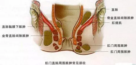 肛门腺开口于肛管直肠交界处的肛窦内,肛窦呈漏斗状向上开口,易损伤及细菌的侵入而引起感染。肛窦一旦感染后,会引起感染化脓,炎症向肛周的间隙内扩散,因为肛周间隙抵御细菌感染的能力差,感染易于在这些间隙中扩散,形成不同部位的脓肿。